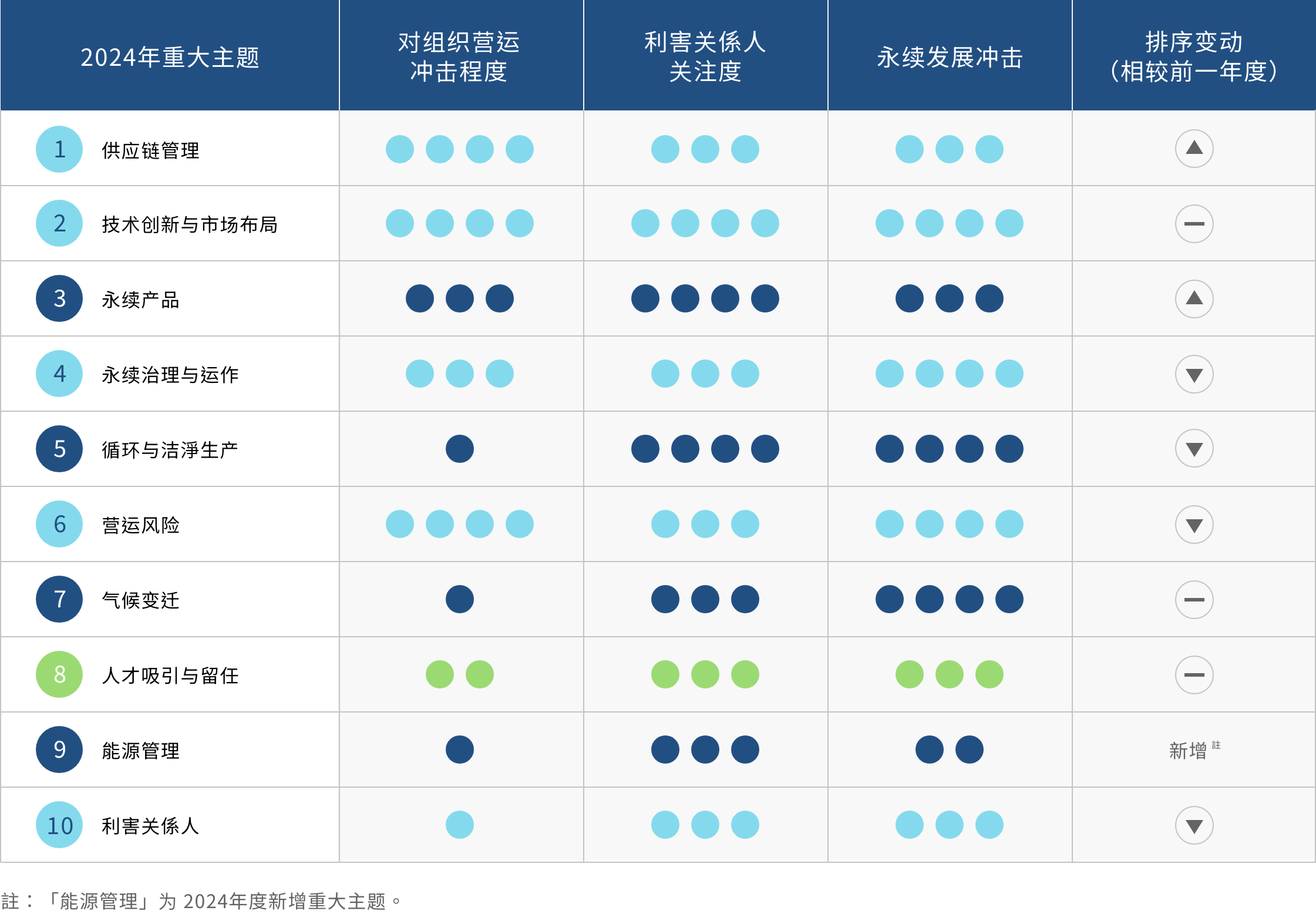 | 利害关系人 | 透过管道与利害关系人有效议合,沟通永续议题并降低正负面冲击,展现永续管理内涵与绩效 | 2.2 利害关系人经营 | |||||||||||||