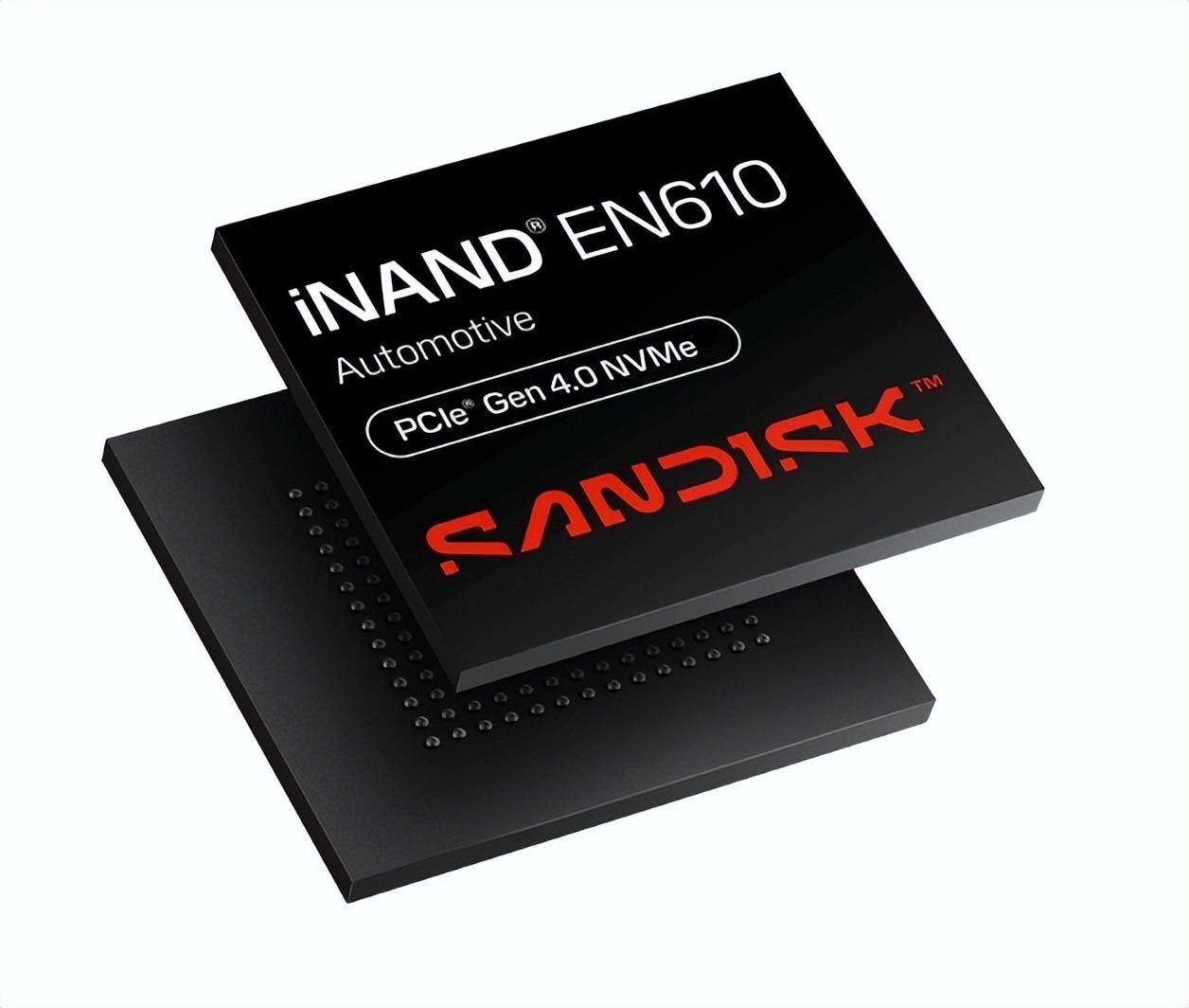 针对于新一代高机能中心计较(HPCC)架构的严苛需求,闪迪同时展出了SANDISK® iNAND® AT EN610 NVMe SSD。该车规级产物撑持宽温事情规模,采用年夜容量TLC闪存,并答应用户将全数或者部门存储空间矫捷配置为高经久性的SLC模式。其M.2 1620 BGA封装于紧凑尺寸内提供了高达1TB的存储容量,为中心计较架构提供了兼具高机能与高靠得住性的存储底座,可以或许矫捷适配差别车载场景对于存储经久性与机能的多样化需求。